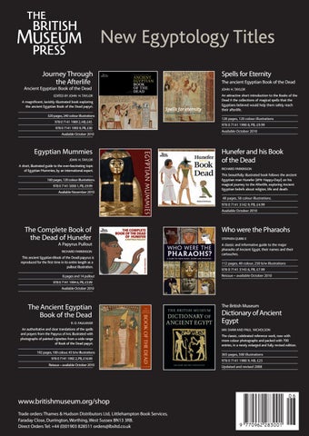 An attractive short introduction to the Books of the Dead – the collections of magical spells that the Egyptians believed would help them safely reach their afterlife. 128 pages, 120 colour illustrations 978 0 7141 1990 8, PB, £9.99 Available October 2010