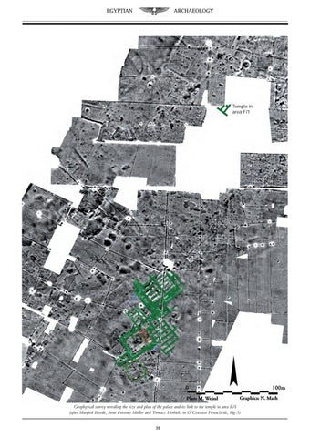 Geophysical survey revealing the size and plan of the palace and its link to the temple in area F/I (after Manfred Bietak, Irene Forstner Müller and Tomasz Herbich, in O’Connor Festschrift, Fig.3) 39