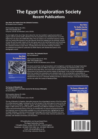 EES publications can be purchased from: The Egypt Exploration Society 3 Doughty Mews, London WC1N 2PG, United Kingdom. Telephone: +44 (0)20 7242 2266. Fax: +44 (0)20 7404 6118. E-mail: rob.tamplin@ees.ac.uk On-line shop: www.ees-shop.com