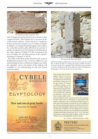 The reconstructed north-western pilaster q Kenneth Griffin is a PhD student at Swansea University. He would like to thank the EES for making this project possible through a Centenary Award. He is grateful to Elena Pischikova for permission to work on the Book of the Dead within the tomb of Karakhamun. Photographs: The South Asasif Conservation Project.