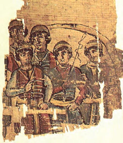 Charioteers (fifth century AD) depicted on a papyrus found by the EES in 1914 at Antinoe (Antinoopolis)