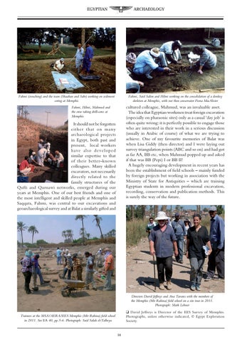 Directors David Jeffreys and Ana Tavares with the members of the Memphis (Mit Rahina) field school on a site tour in 2011. Photograph: Mark Lehner q David Jeffreys is Director of the EES Survey of Memphis. Photographs, unless otherwise indicated, © Egypt Exploration Society.