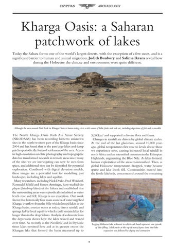Kharga Oasis: a Saharan patchwork of lakes Today the Sahara forms one of the world’s largest deserts, with the exception of a few oases, and is a significant barrier to human and animal migration. Judith Bunbury and Salima Ikram reveal how during the Holocene the climate and environment were quite different.