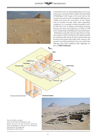 Top: the site before excavation. Centre: the three levels of Ptahshepses’s tomb Bottom: part of the site after excavation, showing the location of Ptahshepses’s tomb (west to east, showing the Step Pyramid in the background). Photographs by Saleh Soleiman. 43