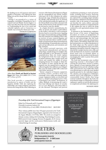 These volumes publish moreatthan 150 volumes papers presented at thethan Tenth These volumes publish These more volumes than 150 publish papers more presented than 150 at papers the Tenth presented the These Tenth publish more 150 papers presented at the Tenth International Congress of Egyptologists, organized at the University of organized at the University of International Congress International of Egyptologists, Congress organized of Egyptologists, at the University organized of at the University International of Congress of Egyptologists, the Aegean (Rhodes), May articles are arranged in the Aegean (Rhodes), the22-29 Aegean May (Rhodes), 2008. The 22-29 articles May are 2008. arranged The articles in 22-29 are arranged the2008. Aegean in The (Rhodes), 22-29 May 2008. The articles are arranged in thematic sections, dealing with Archaeology, Royal dealing ideologywith & society, thematic sections, dealing thematic withsections, Archaeology, dealingRoyal with ideology Archaeology, & society, Royal ideology &thematic society, sections, Archaeology, Royal ideology & society, Belief system Language, literature & epigraphy, Art & vitreous Belief system & ritual, Belief Language, system literature & ritual, & Language, epigraphy, literature Art & & vitreous & ritual, epigraphy, Art &Belief vitreous system & ritual, Language, literature & epigraphy, Art & vitreous material, world, Egypt and the south-eastern and material, Egypt and material, the south-eastern Egypt and Mediterranean the south-eastern Mediterranean and world, material, and Mediterranean Egypt and the world, south-eastern Mediterranean world, and Cultural heritage & museology. Cultural heritage & Cultural museology. heritage & museology. Cultural heritage & museology.
