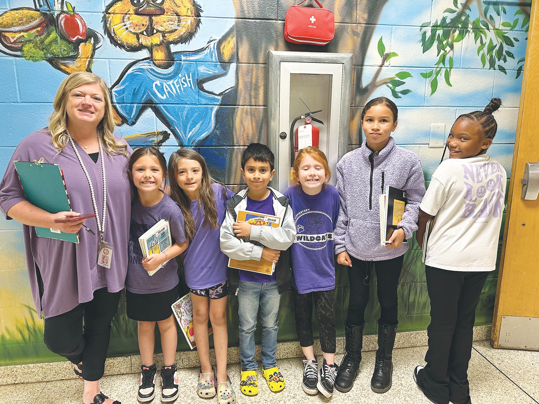 Mrs. Somer Palomba and her students (from left to right) Kaydence Peavy, Elloree Reep, Mateo Garcia, Kylar Ramsey, Melanie Covington, and Parris Fletcher.