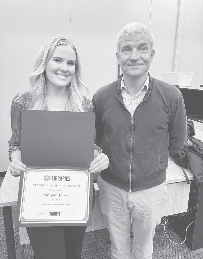 Morgan Jones, a senior history major at Clemson University, received the first place Undergraduate Research Award from Clemson Libraries. The award recognizes students who make use of library resources and services to produce outstanding research for scholarly or creative works.
