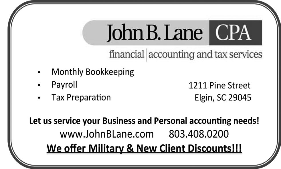 SEE PAGE 8 Blaney ‘Purples Up’ “A Companion for People who Live, Work, & Play in Elgin, Lugoff and Camden” Volume 20, No. 4B April 19, 2024 Dine In or To Go! 803.408.2757