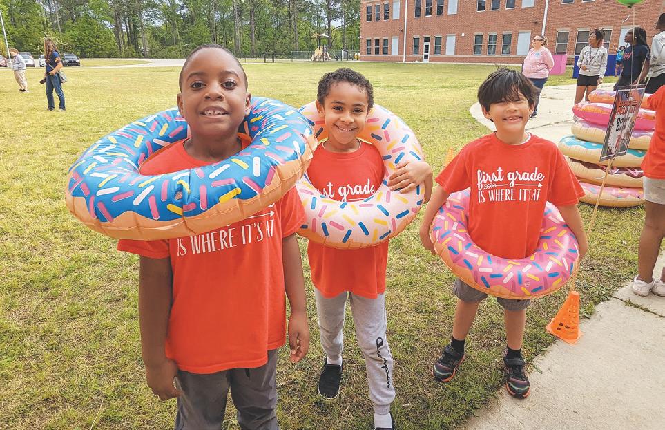 "Cloudy with a Chance of Field Day!" Volunteers from the Lugoff Optimist Club and LugoffElgin High School athletes made Field Day at Lugoff Elementary a huge success. PE teacher, Mrs. Jessica Geiger, organized food themed games such as tomato toss, build a burger, and donut dash! Thankfully, no real rain spoiled the fun!
