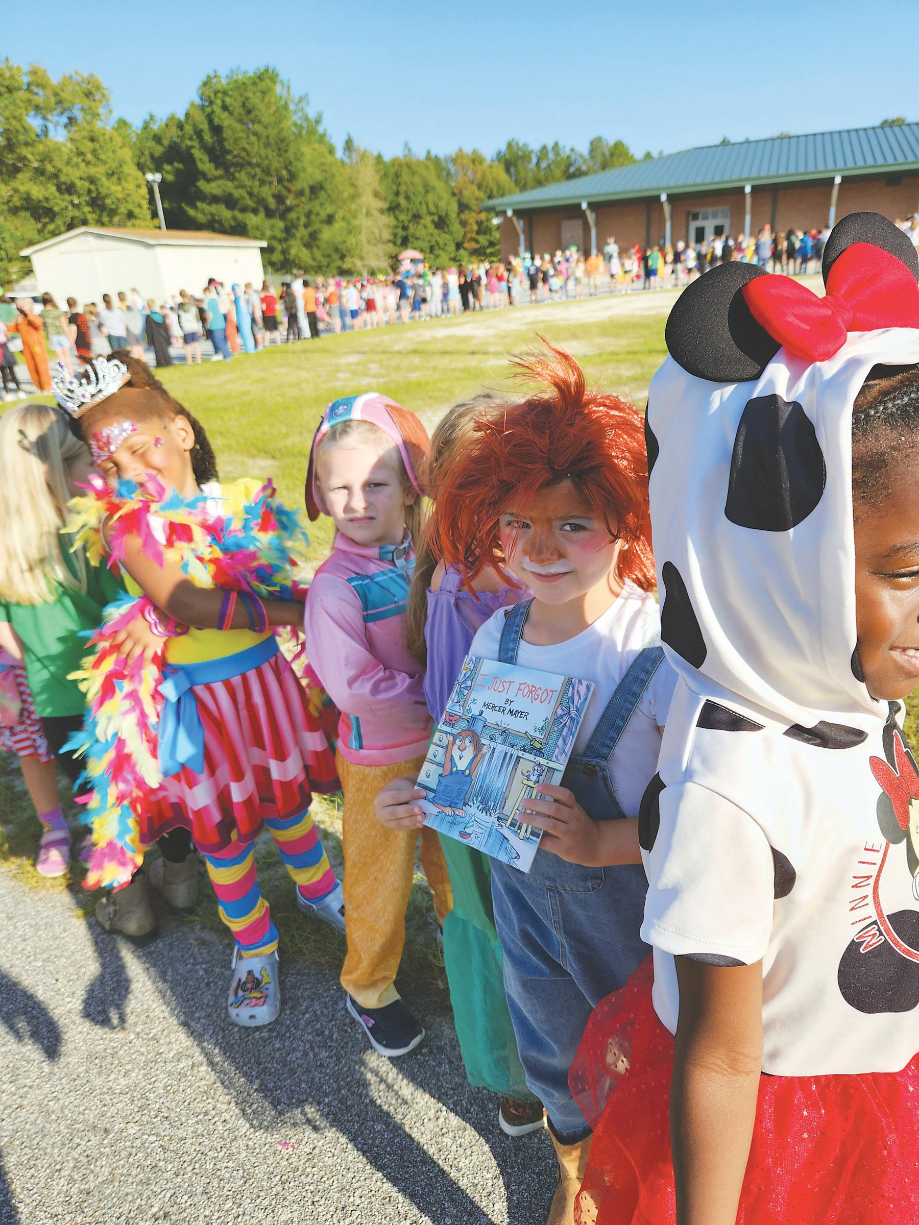Recently, students and teachers at Doby's Mill Elementary School celebrated their love of reading! They dressed as favorite book characters and held a school-wide parade to show off their costumes. Literacy on the Lawn fered many fun reading-related activities, and students shopped at the Book Fair throughout the week. Finally, we wore red, white, and blue to celebrate