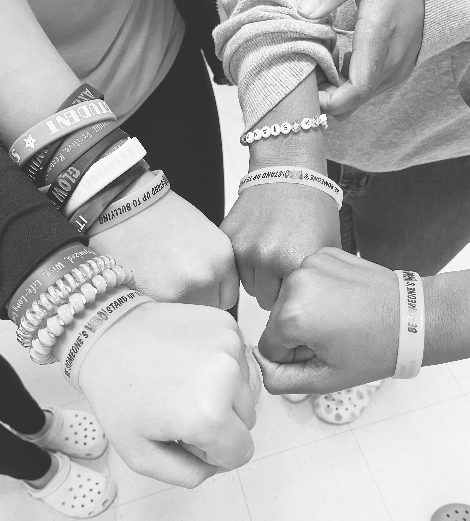 ceived anti-bullying bracelets. Students and staff also wore orange for unity.