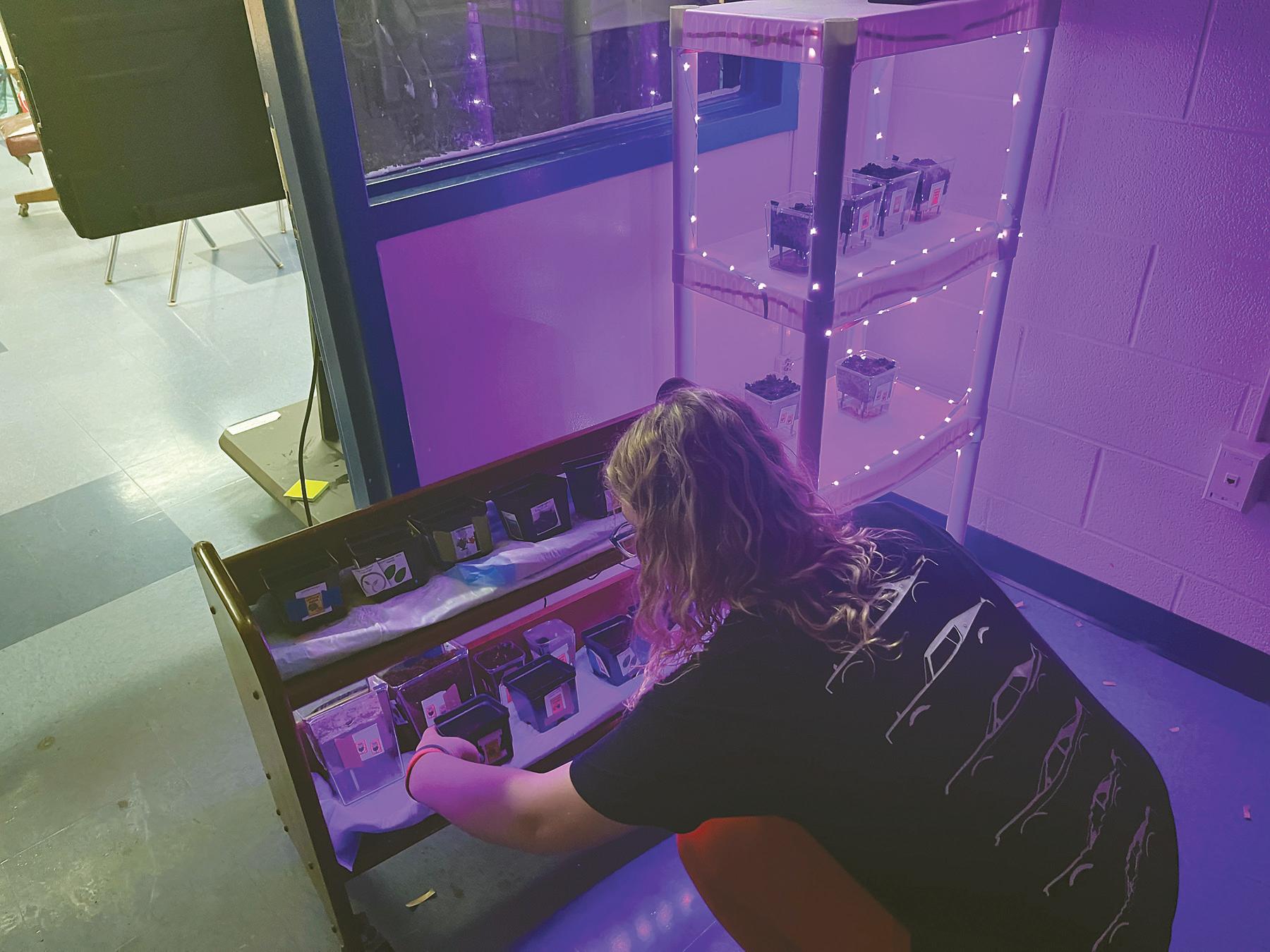 Under Ms. Middleton's supervision, students have set up experiments to test the effectiveness of coffee grounds as a soil additive for growing leafy greens and tomatoes. Additionally, they are investigating self-watering systems that use "bottom-up watering" techniques to improve plant
