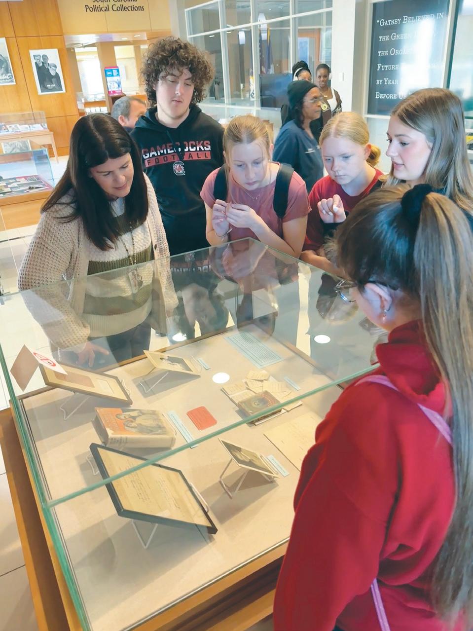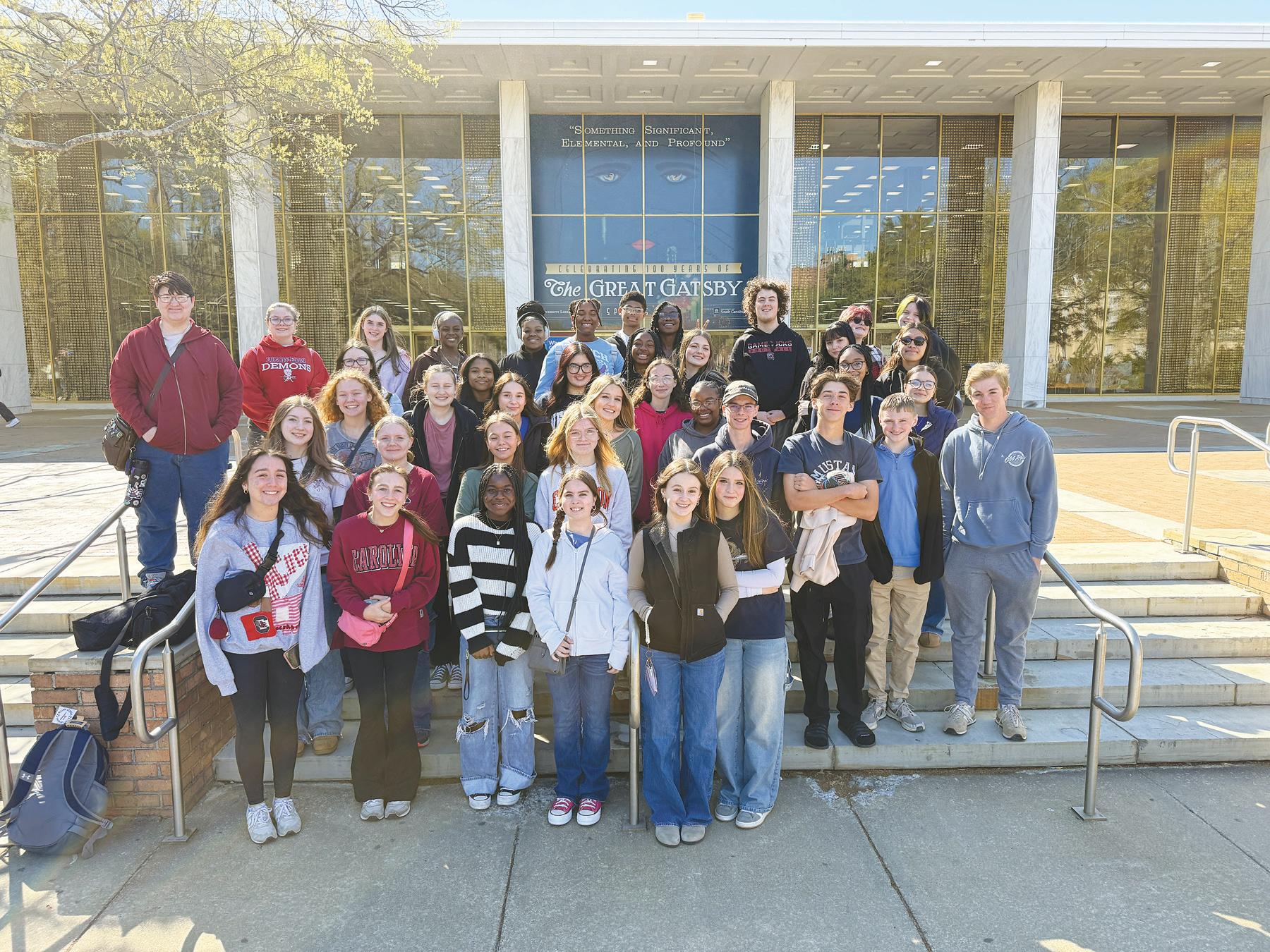 English teachers Wendy Mullis and Jenny Proctor recently took English classes on a fascinating field trip to the University of South Carolina’s Thomas Cooper Library, where they explored The Great Gatsby exhibit at the Irvin Department of Rare Books & Special Collec tions.