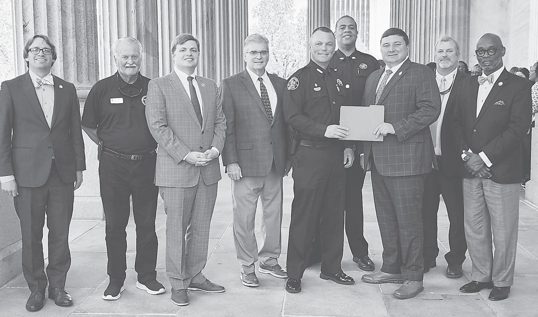 Pictured above, left to right: Sen. Jeffrey Graham, KCSO Foundation Chairman Benji Jackson, Rep. Brandon Newton, Sen. Allen Blackmon, Sheriff Lee Boan, Chief Deputy Tyrrell "Rock" Coleman, Rep. Cody Mitchell, Daniel Roberts, and Rep. Robert Reese For more information on being a sponsor, visit https://www.kershawsheriff.com/kcso-memorial
