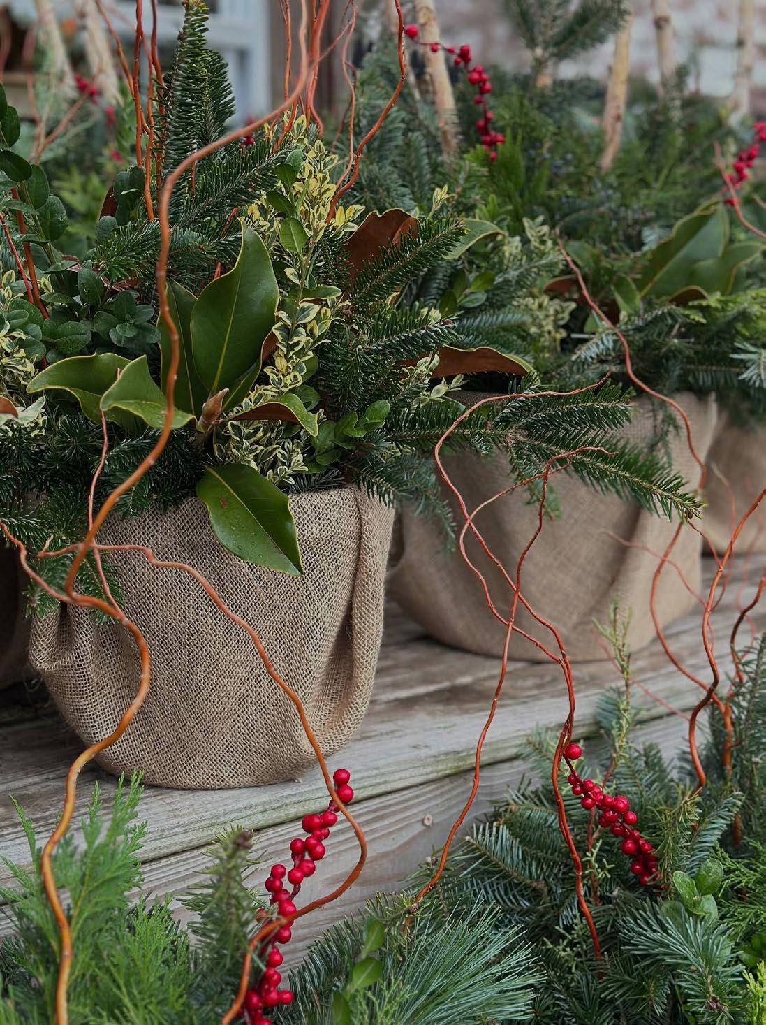 Pick up amaryllis, poinsettias and other holiday houseplants, fresh greens (garland, wreaths, planters), cut branch bundles (willow, winterberry, magnolia, juniper) and Fraser fir trees.