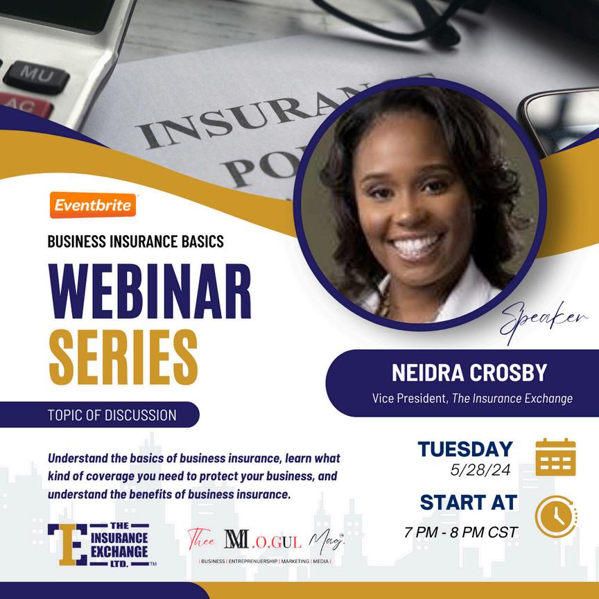 Are you a small business owner or entrepreneur looking to protect your dreams and investments? Join us for an exclusive online webinar where Thee M.O.gul Mag. has teamed up with Neidra Crosby, Vice President of The Insurance Exchange!