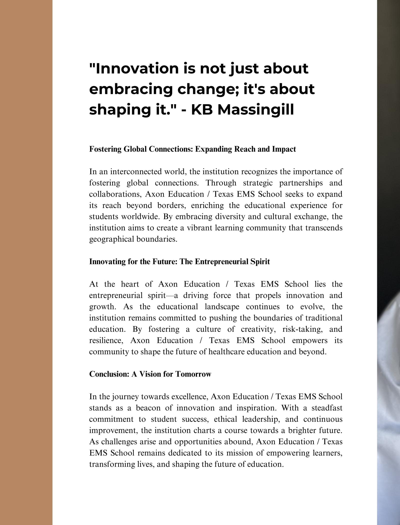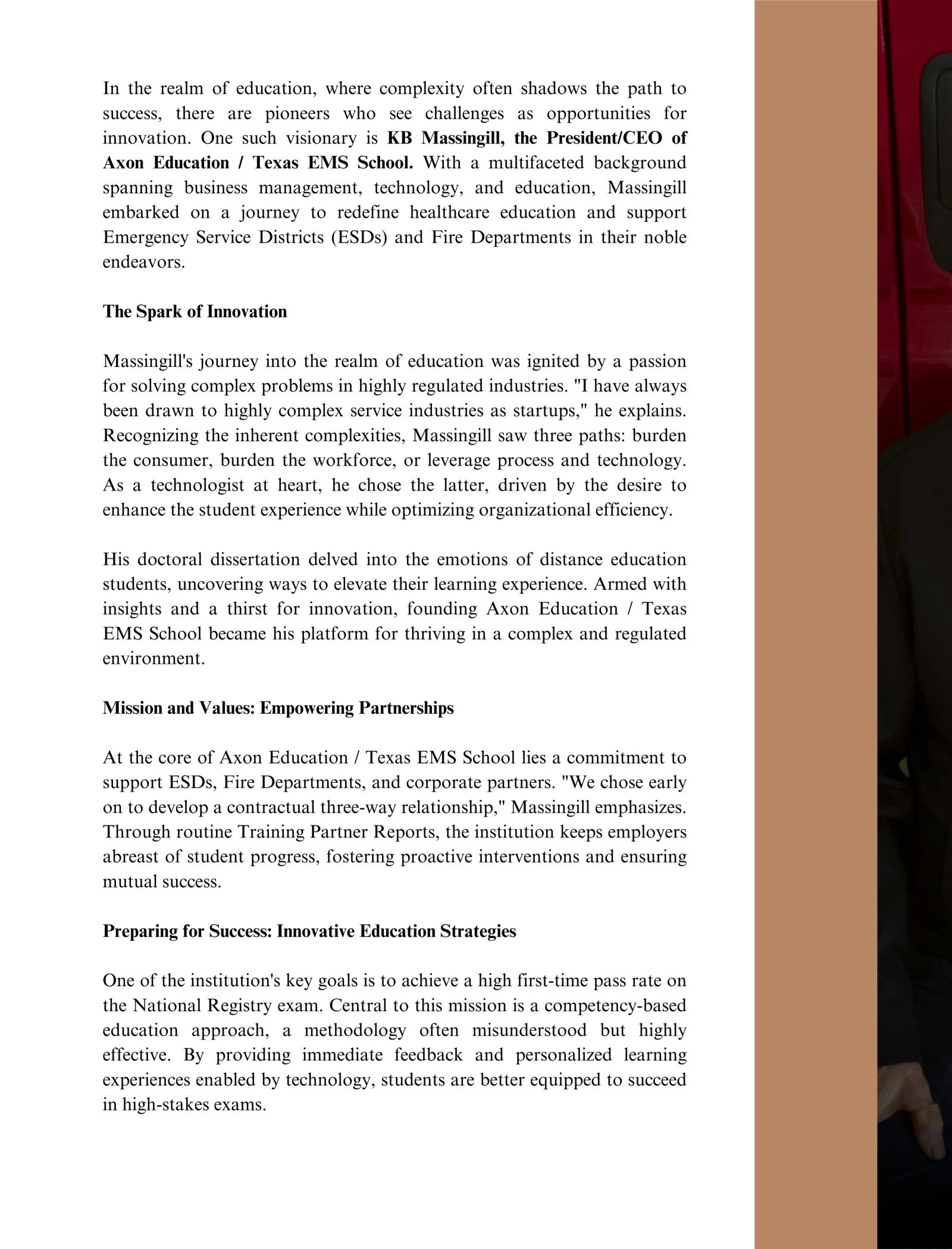 Throughourin-depthinterviewwithKB,readerswillgainvaluableinsights intohisjourneyfromtechnologisttoeducationpioneer.Hisuniqueblendof expertiseinbusinessmanagement,technology,andeducationhasnotonly shapedthevisionofAxonEducation/TexasEMSSchoolbutalso revolutionizedthefieldofhealthcareeducation.