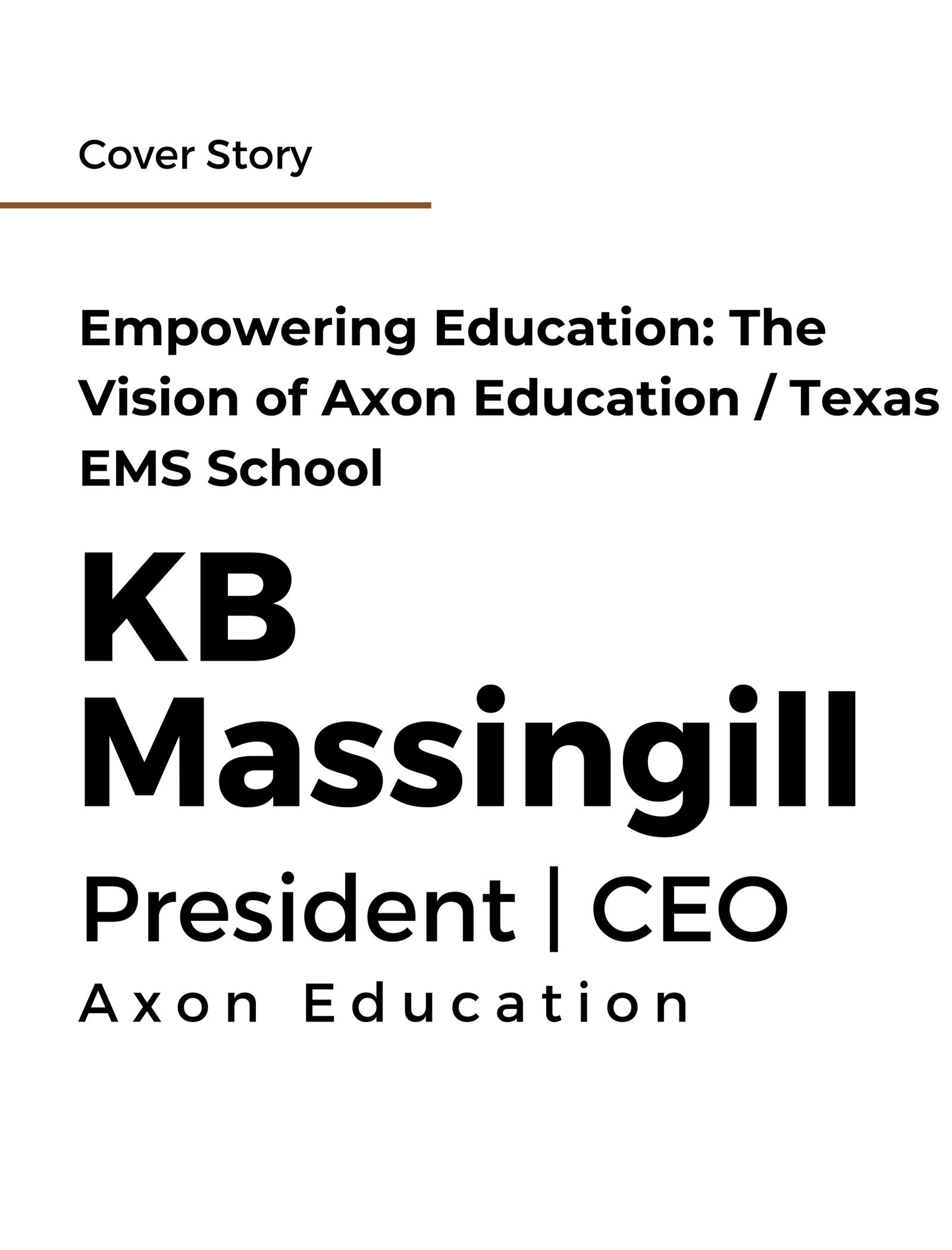 InthisspecialeditionofTheEntrepreneurTimesMagazine,wearethrilled topresentKBMassingill,thePresident/CEOofAxonEducation/Texas EMSSchool,asour"MostEmpoweringBusinessLeadertoWatch-2024."