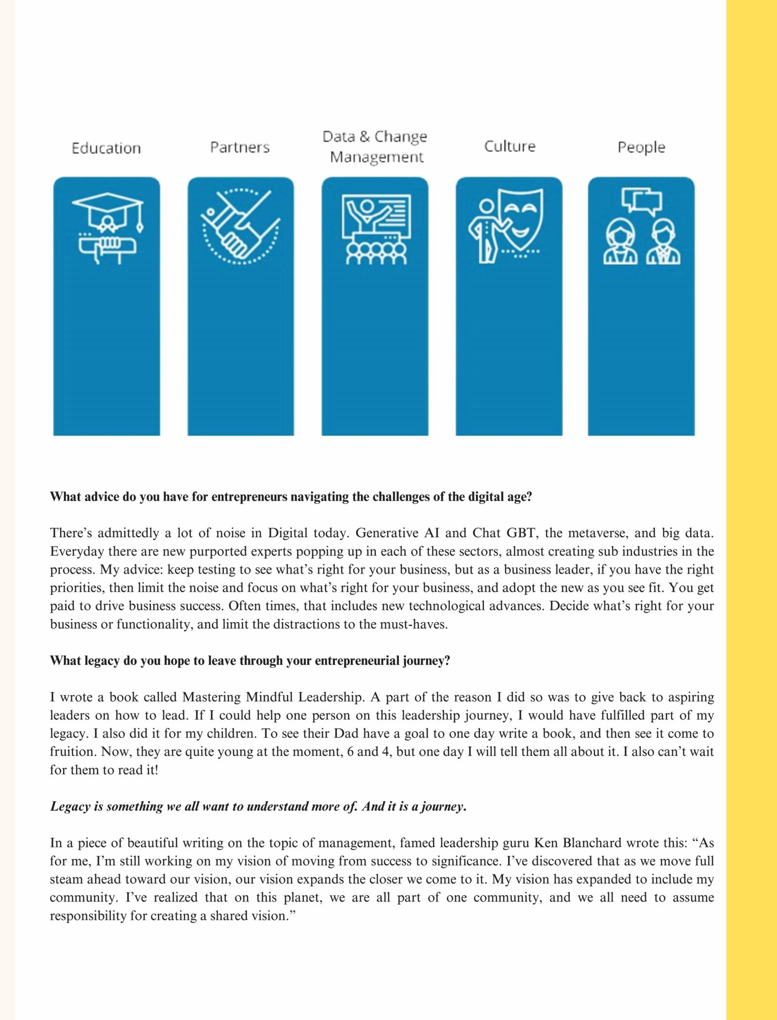AsyoureadKB'sstory,youwillbeinspiredbyhisentrepreneurialspirit,his relentlesspursuitofexcellence,andhisunwaveringbeliefinthepowerof educationtotransformlives.WearehonoredtofeatureKBMassingillasour coverstoryandcelebratehisremarkableachievementsasatrailblazerinthe worldofbusinessandeducation.
