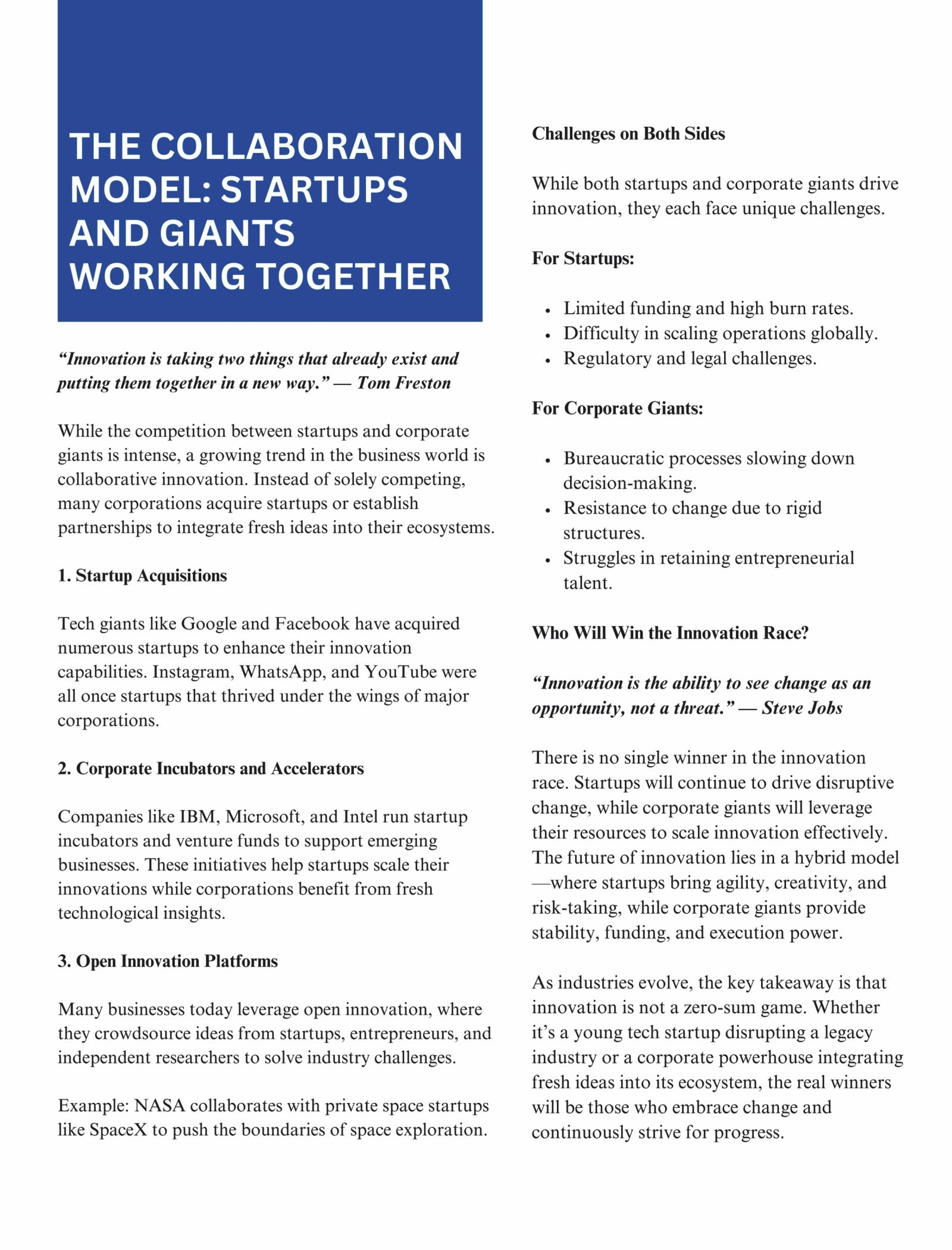 Startups vs. Corporate Giants: Who Will Lead the Innovation Race?