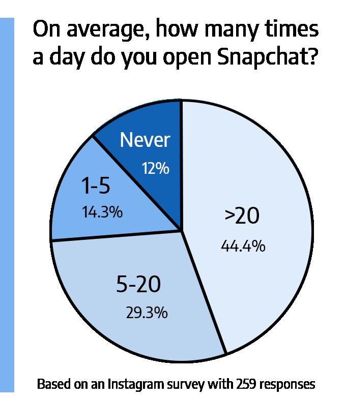 “When my parents took my phone, I deleted all of my apps, so I lost my highest streak of around 1,000,” freshman Rayyan Ghafoor said. “I felt horrible because I had just lost all of my hard work.” R A T I ON BY EMMA CONSTABLE Snapchat allows users to communicate with each other through short disappearing C GRAPHI I LLU S T snaps, creating a welcoming environment for those who feel anxious communicating with peers in person. Many even utilize Snapchat’s short-lived features to start small conversations with someone.