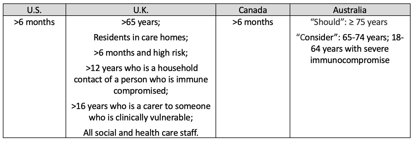 Covid-19 vaccination policy across several countries in 2024. Table by Your Local Epidemiologist