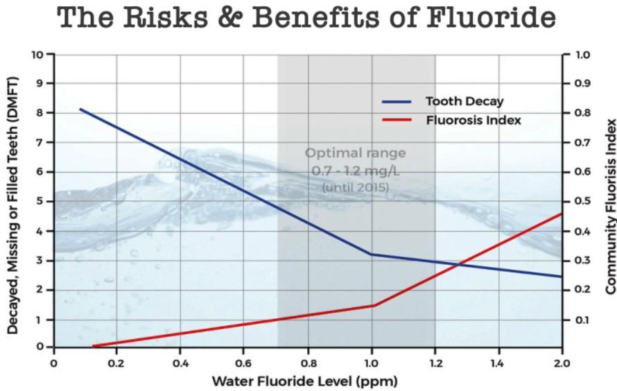 In 2015, the U.S. Public Health Service lowered its recommended level for community water systems from 0.7–1.2 ppm to a single value of 0.7 ppm. The official reason was aesthetic: to reduce mottled teeth.