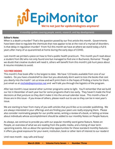 -30- Monthly Word Game -31- What We're Reading -33- Notes on People -36- Near Term Event Calendar -43- Newly Listed Public Health Jobs -47- Marketplace - Sponsored Jobs & Events