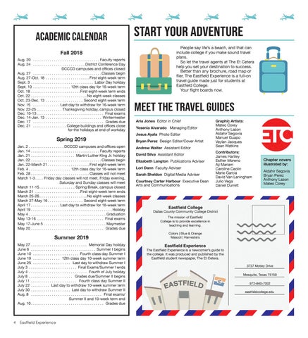 The Eastfield Experience is a newcomer’s guide to the college. It was produced and published by the Eastfield student newspaper, The Et Cetera. 3737 Motley Drive Mesquite, Texas 75150 972-860-7002 eastfieldcollege.edu