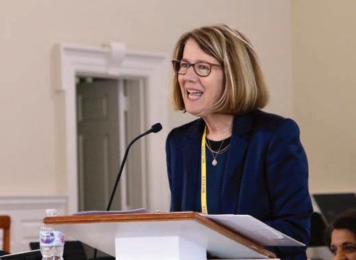 “It is a pleasure to be here to congratulate the senior class and welcome them as EWS Alumnae. Place matters, and this beloved chapel is what I hold in mind when I think about my EWS experience, now 50 years ago. It is a beautiful and peaceful place for reflection and refuge — a space for precious, private thoughts, as well as a place to come together as a community. Perhaps most important, the chapel is where we gathered to listen openly and respectfully to each other. I hope it has been the same for you — reflection, protected space, listening to each other is desperately needed.