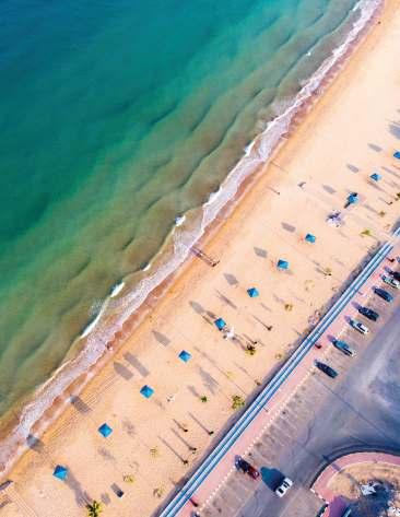 getting in a length or two. Numerous parks, playgrounds, ice cream shops, cafes, rental bikes and scooters are found along the promenade, while live buskers on the boardwalk set the mood as sunset approaches. Despite its popularity, the sheer size and length of the Corniche beach means that it never feels crammed, while the downtown skyscrapers, juxtaposed against the vibrant coastline, offer simply breathtaking views.