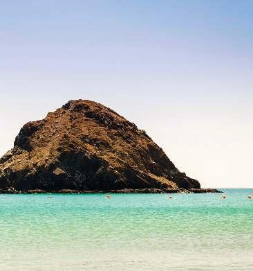 Tucked away off the Al Aqah coast in Fujairah, Snoopy Island is a great retreat for adventure seekers. With its rocky formations resembling iconic cartoon character Snoopy’s nose, stomach and feet, this charming spot is a picture-perfect escape for all the family. From the Al Aqah coast, you can enjoy a view of Snoopy Island’s outline but for a closer look, swim or simply opt for a kayak or paddleboard to reach the rocky island. Diving and snorkeling equipment are on offer, so everyone with a keen interest in the underwater world, teeming with marine life and coral reefs, can take full advantage of the beach’s crystalclear waters. Snoopy Island is a rare destination that still offers a crowdfree experience, so you can unwind away from the usual hustle and bustle found at all the other popular spots in the UAE.