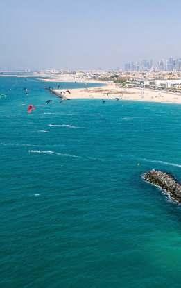 The lesser-known neighbour of Kite Beach, Sunset Beach is one of the best surfing spots in the UAE. Beginners can receive lessons from the team at SurfHouseDubai,andit’salsoknown for its illuminated night swimming areas. The perfect place for a refreshing post-work swim under the starry night sky, it also backs straight onto the lush lawns, playgrounds and BBQ areas of Umm Suqeim Park.