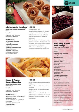 Honey & Thyme Roasted Parsnips By Mark Rigby, executive chef at Premier Foods Serves 10 Preparation time: 10 minutes Cooking time: 30 minutes
