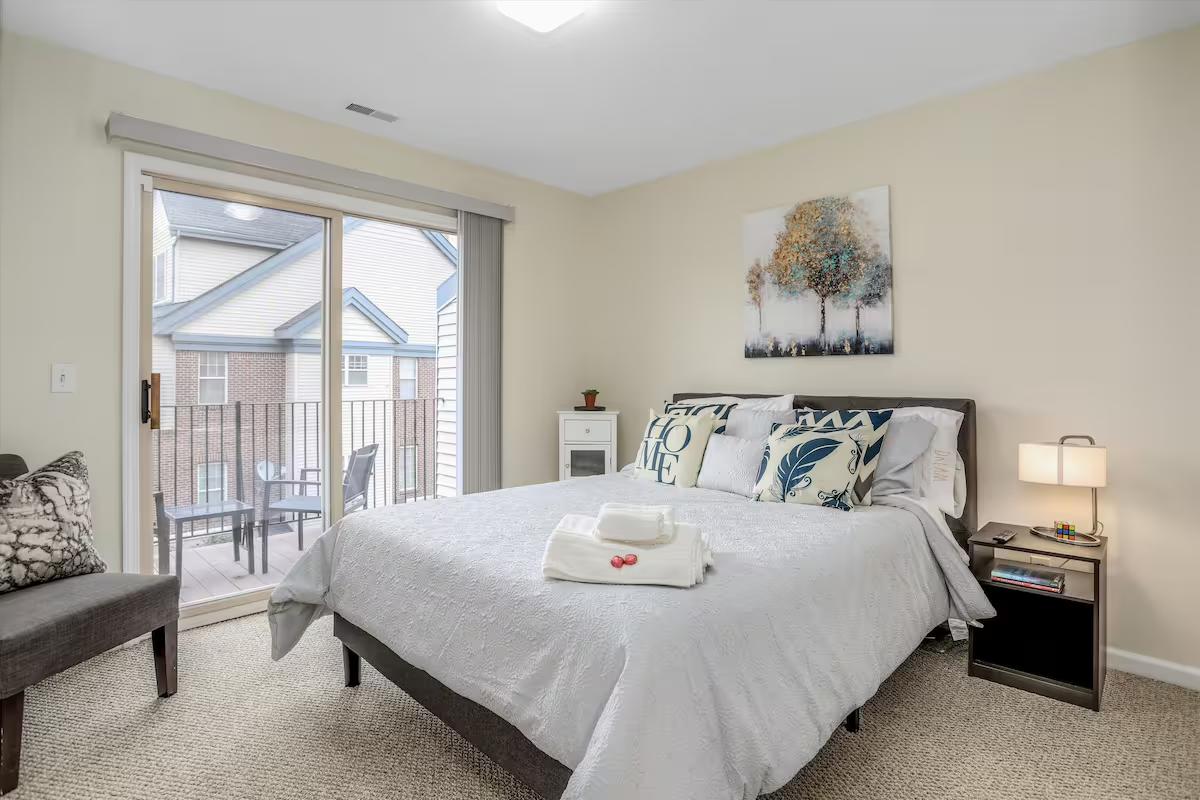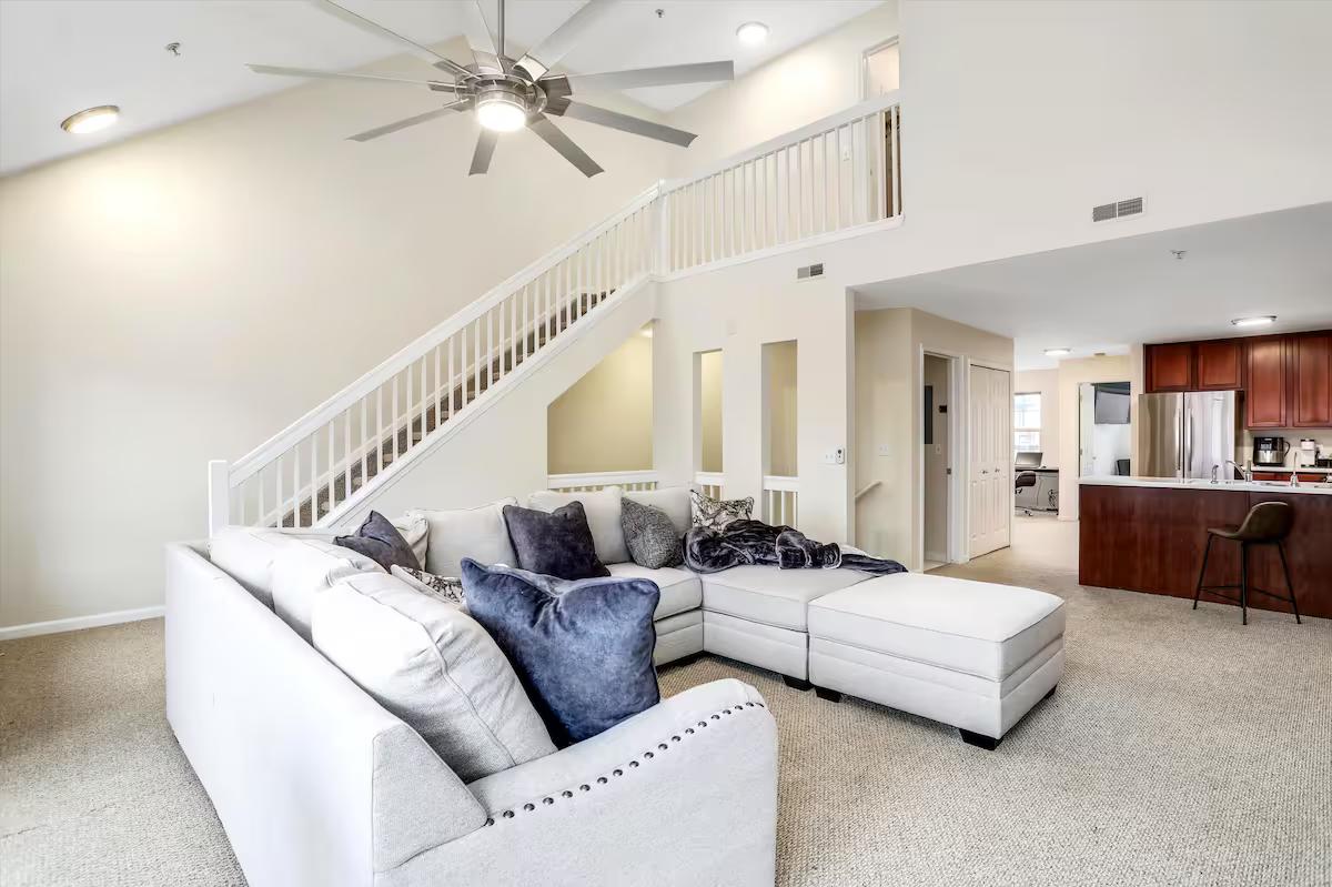 Spacious and bright Townhouse over 3 stories including 2 bedrooms, 2 full bathrooms plus a home office/flex space. Spacious master bedroom with power adjustable Purple Hybrid Premier King bed, gas fireplace, walk-in closet, shower and jetted hot tub.