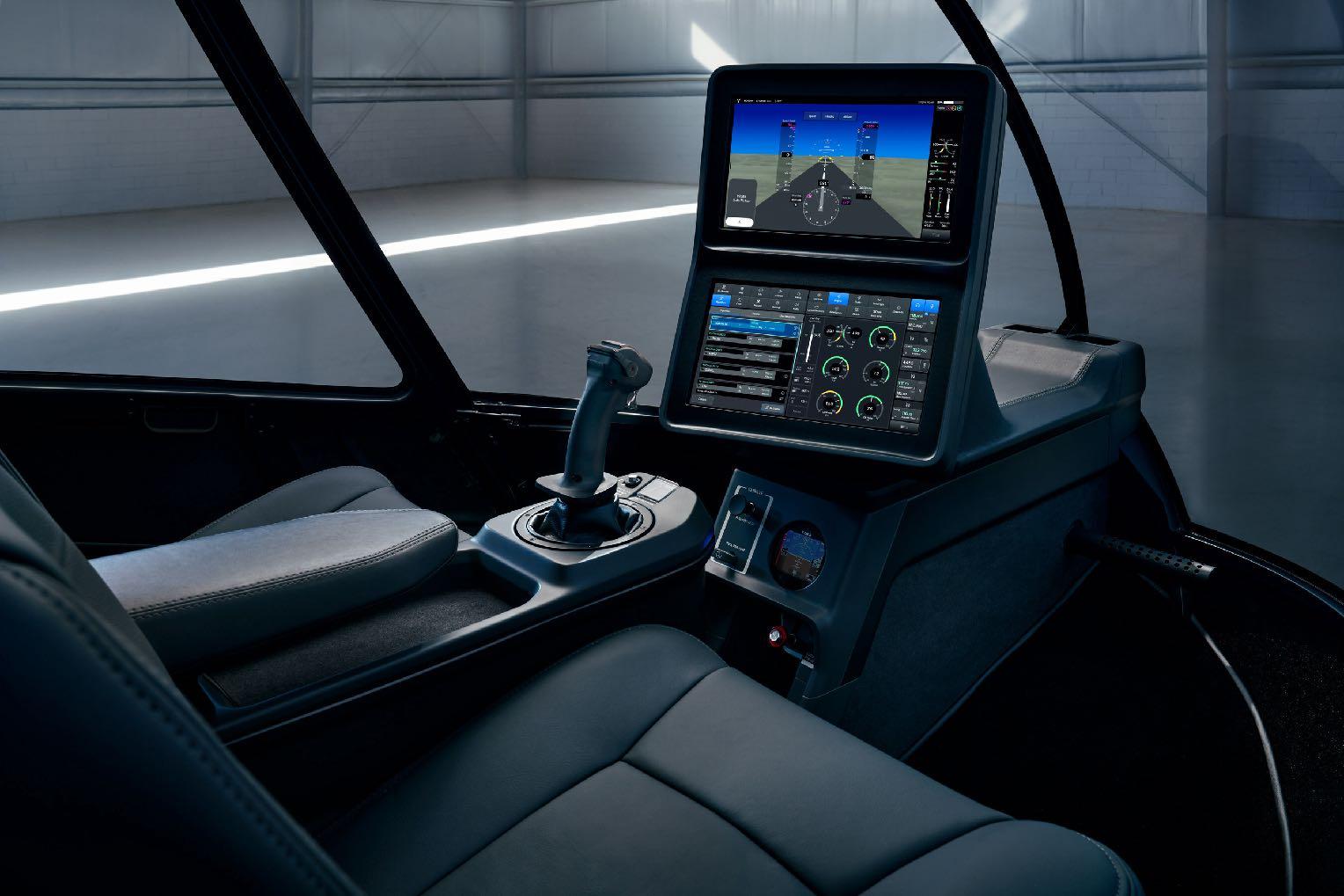 Skyryse has removed the complex mechanical controls and replaced them with a single four-axis control stick reminiscent of that found in an F-35, thanks to a completely integrated fly-by-wire system and flight control software. The single control stick is combined with two intuitive touch screens, uncluttered by the traditional complex array of boxes, controls, and indicators.