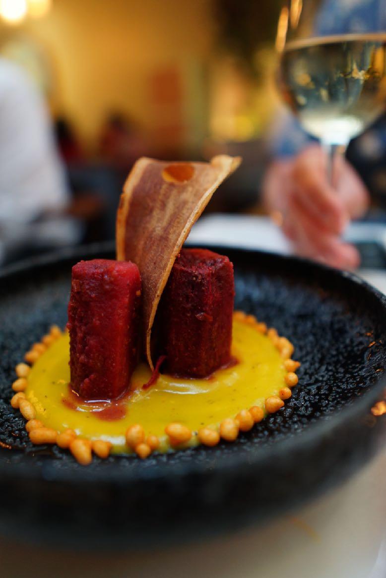 Incredible plating, amazing colors, wonderful mix of textures. An unforgettable dish.