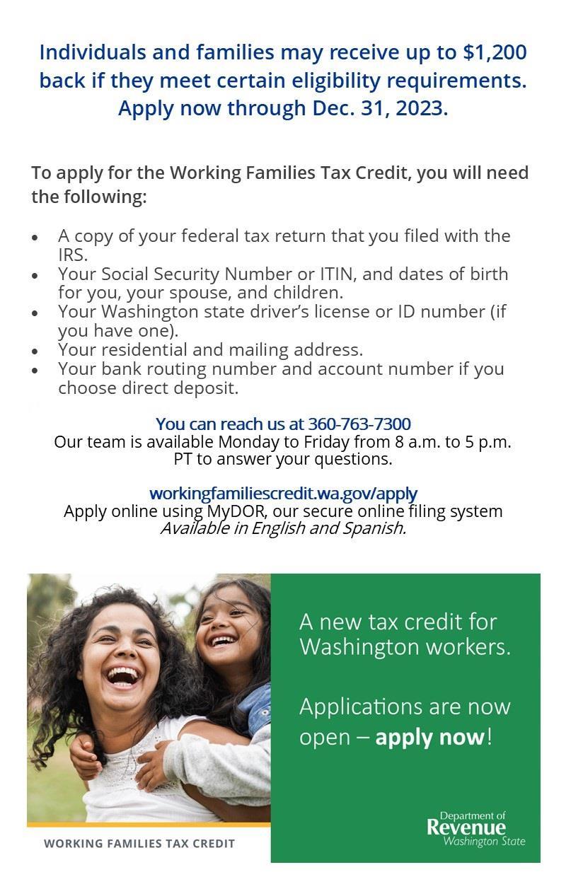 Working Families Tax Credit Outreach & Application 10 am – 4 pm at Mirabeau