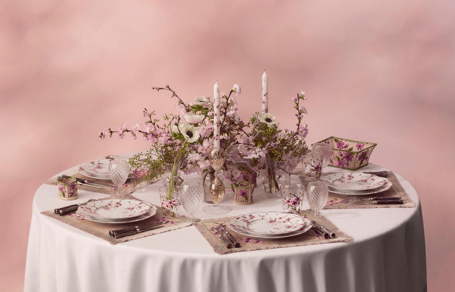 Para celebrar esta conexión, Dior Maison lanza la colección Les Cerisiers, inspirada en el icónico conjunto de alta costura jardín japonés de la temporada primavera-verano de 1953. El motivo central de la colección es el elegante cerezo en flor, adornado con un delicado pájaro, símbolo de belleza y efímera perfección. Este diseño atemporal ha sido reinterpretado en una variedad de piezas esenciales, desde objetos decorativos hasta exclusiva vajilla y cristalería, elevadas con detalles de rafia.