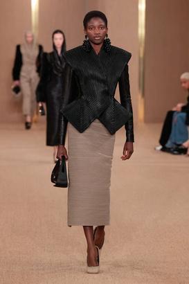 Dejando a un lado la tendencia del clean look y toda la estética minimalista que representa, hemos visto un creciente interés por la ostentación sin miedo. Esta tendencia se inspira en la imagen icónica de la esposa del mafioso, más conocida como la "mob wife". Es una representación en toda regla del concepto de mujer sexy y elegante, que culmina en su característico abrigo maxi de piel o de pelo, una prenda que hemos visto en varios desfiles. Además, su estética más oscura se manifiesta a través de looks de animal print, cabello largo y suelto, y ojos con un ahumado negro. Este estilo combina la sensualidad con la elegancia de una manera sofisticada y llamativa, celebrando una feminidad poderosa y segura de sí misma. La influencia de esta tendencia se puede ver no solo en las pasarelas, sino también en el street style, donde las mujeres incorporan prendas más ajustadas, incluyendo cuero y joyas deslumbrantes para lograr un look lleno de glamour y desenfado.