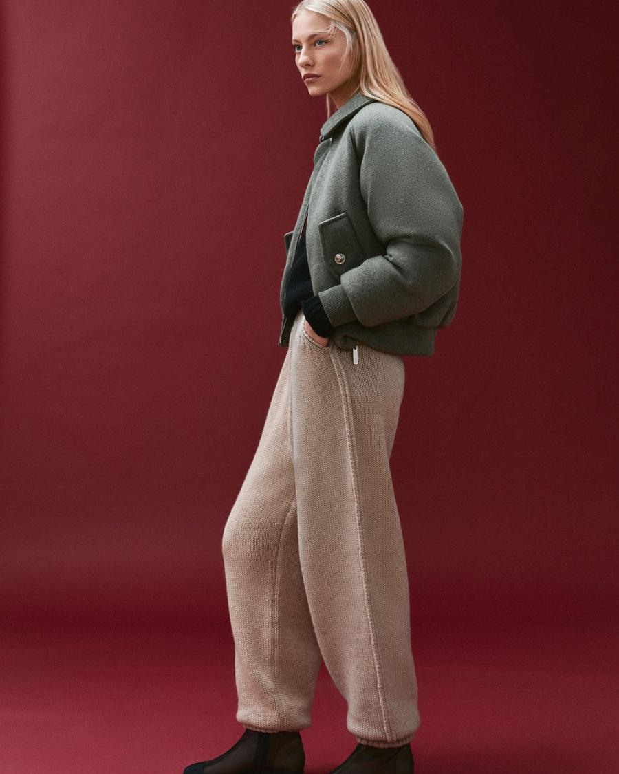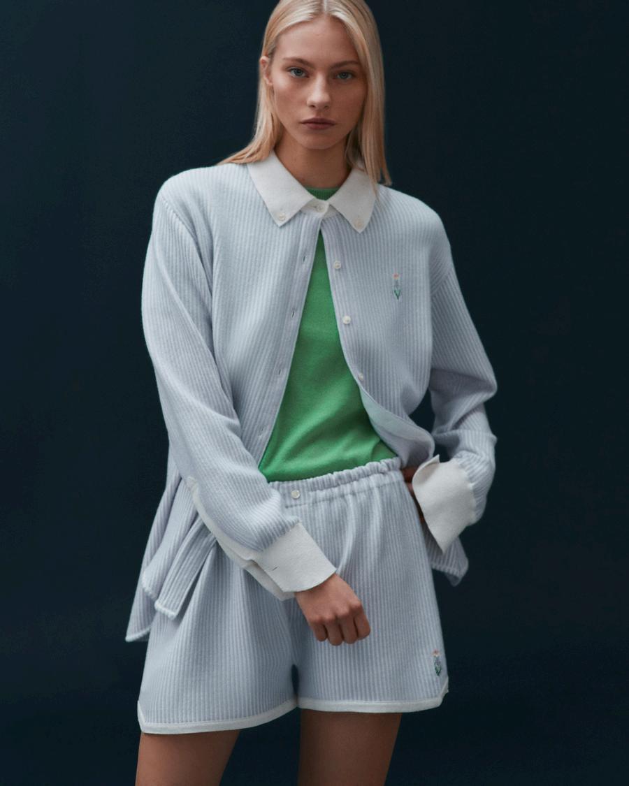 Entre las piezas más destacadas de la colección se encuentra un conjunto de chaqueta y falda con efecto ante, confeccionado en tejido de chenilla de doble cara, que sorprende por su realismo. La chaqueta bomber, con detalles impecables como cremalleras y bolsillos laterales, se perfila como un imprescindible, mientras que la camisa de raya diplomática en tonos pastel aporta un toque de delicadeza. La gama Denim y las prendas de cachemira, desde capas abotonadas hasta jersey de inspiración vintage, siguen siendo las estrellas indiscutibles, reafirmando el compromiso de Barrie con la calidad y el diseño atemporal.