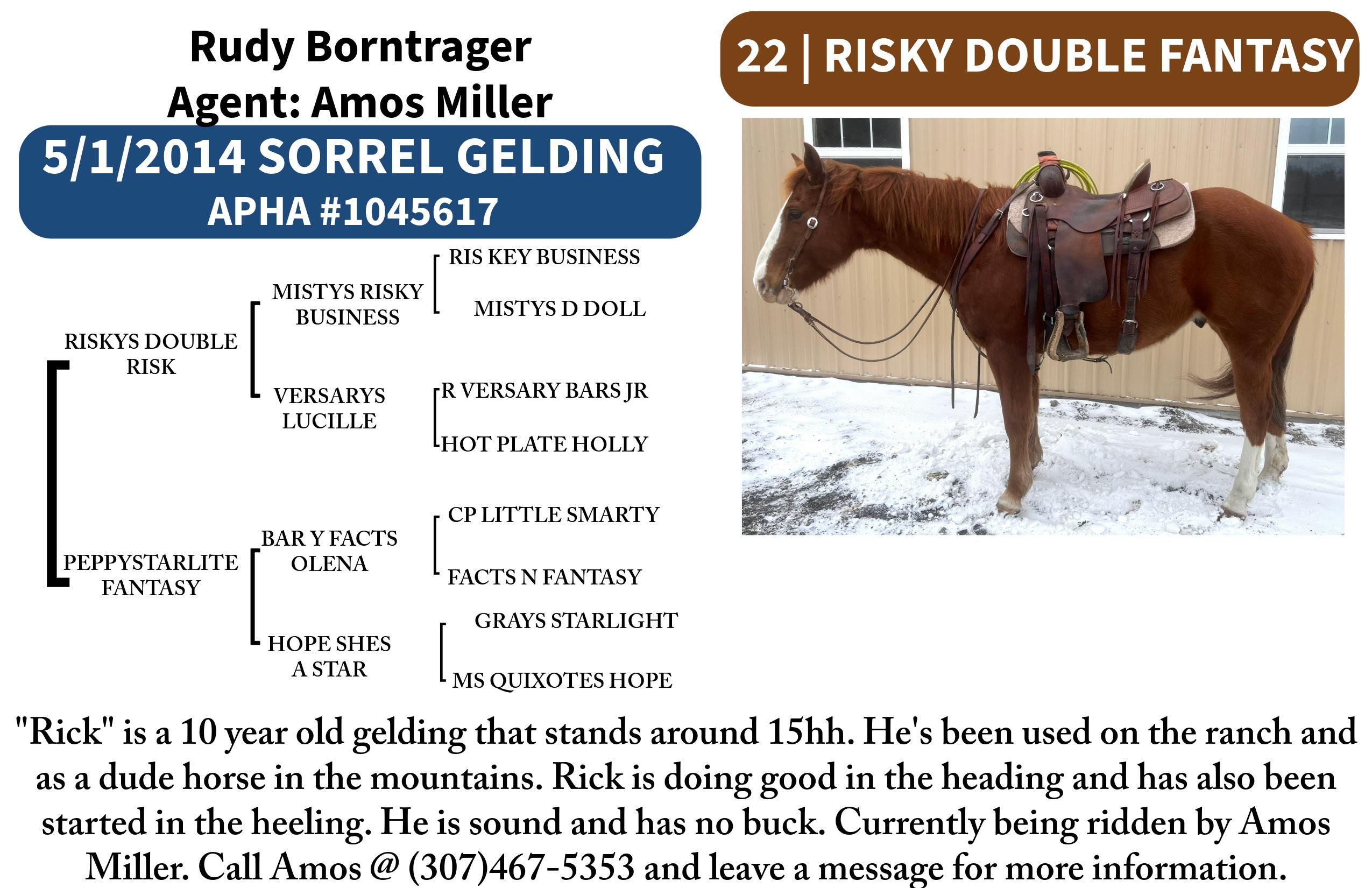 4. Announcements from the block will take precedence over the printed material and all other announcements. Every effort has been made to assure the correctness of this catalog, but the Cowboy Country Horse Sale, sale management and auctioneer are not responsible for errors or omissions, and assume no liability on its part or that of the seller as to statements, either verbal or written, regarding the horse sold. Catalog comments are provided by the seller. The Cowboy Country Horse Sale acts only as an agent for the several consignors in the sale, and does not assume any responsibility of the animal’s future usefulness. If an adjustment needs to be made, it must be made between the purchaser and the consignor.