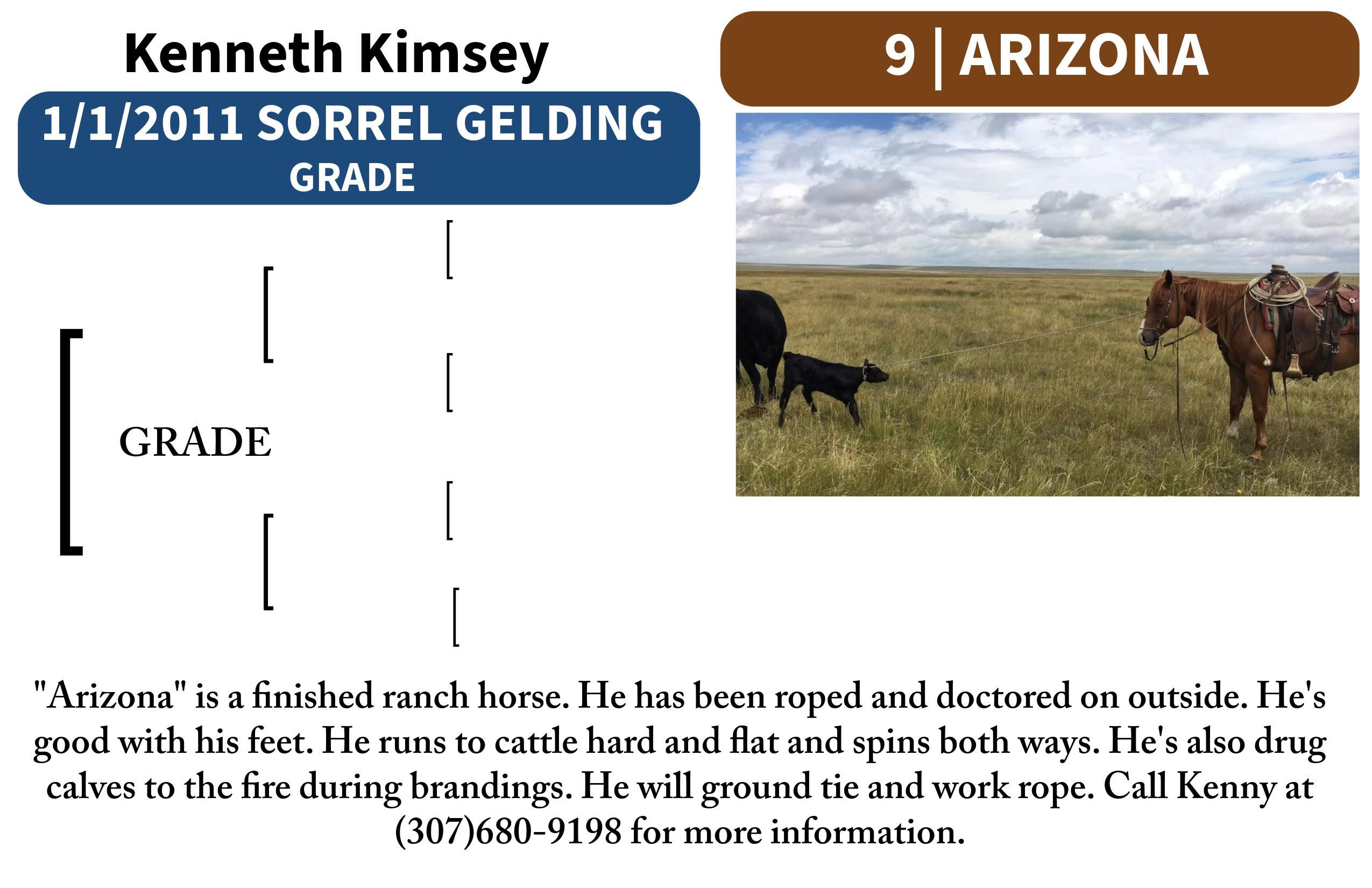 8. The Cowboy Country Horse Sale, The Campbell County Public Landboard, CAM-PLEX or their employees will not be responsible for any injury to or loss of any animal or accidents thereby, or any injury or loss of life to any participants or spectators during the Cowboy Country Horse Sale. NO ALLEY TRADING ALLOWED!