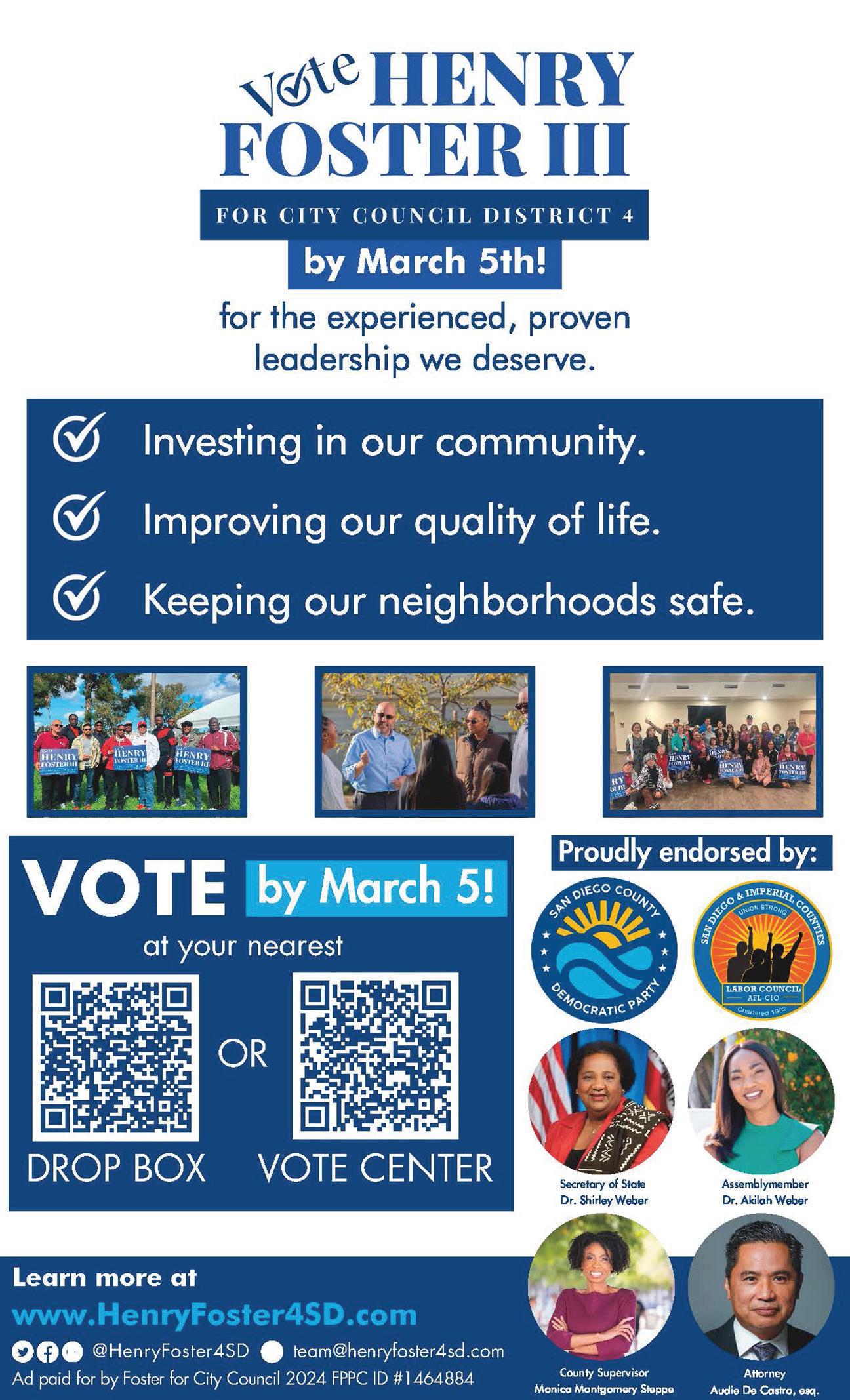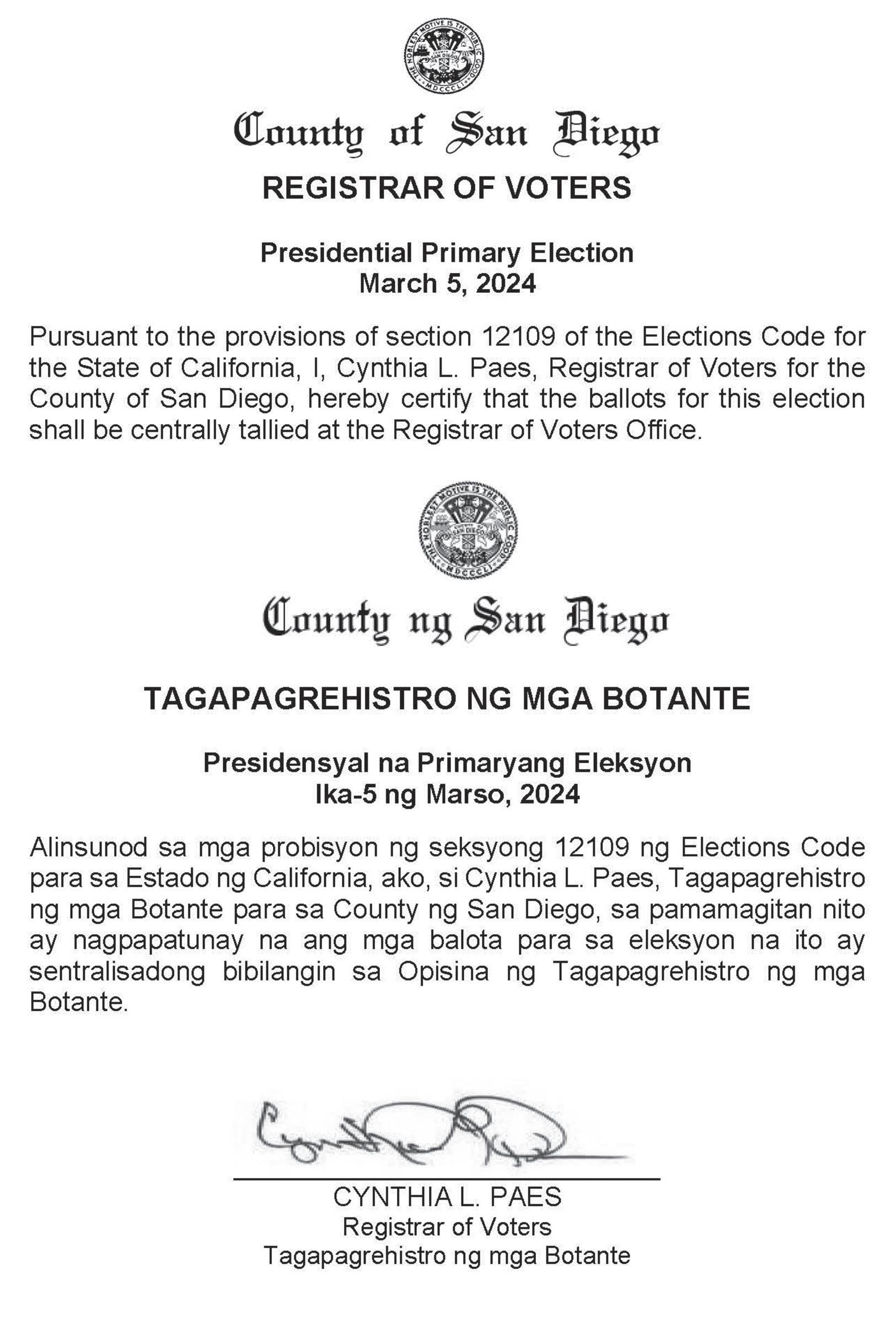 Want to sell your products? PLACE YOUR AD TODAY! E-MAIL: filpressads@aol.com Call:619.434.1720 Registrar reminds Voters to vote early for March Presidential Primary Election Your vote matters, cast your vote