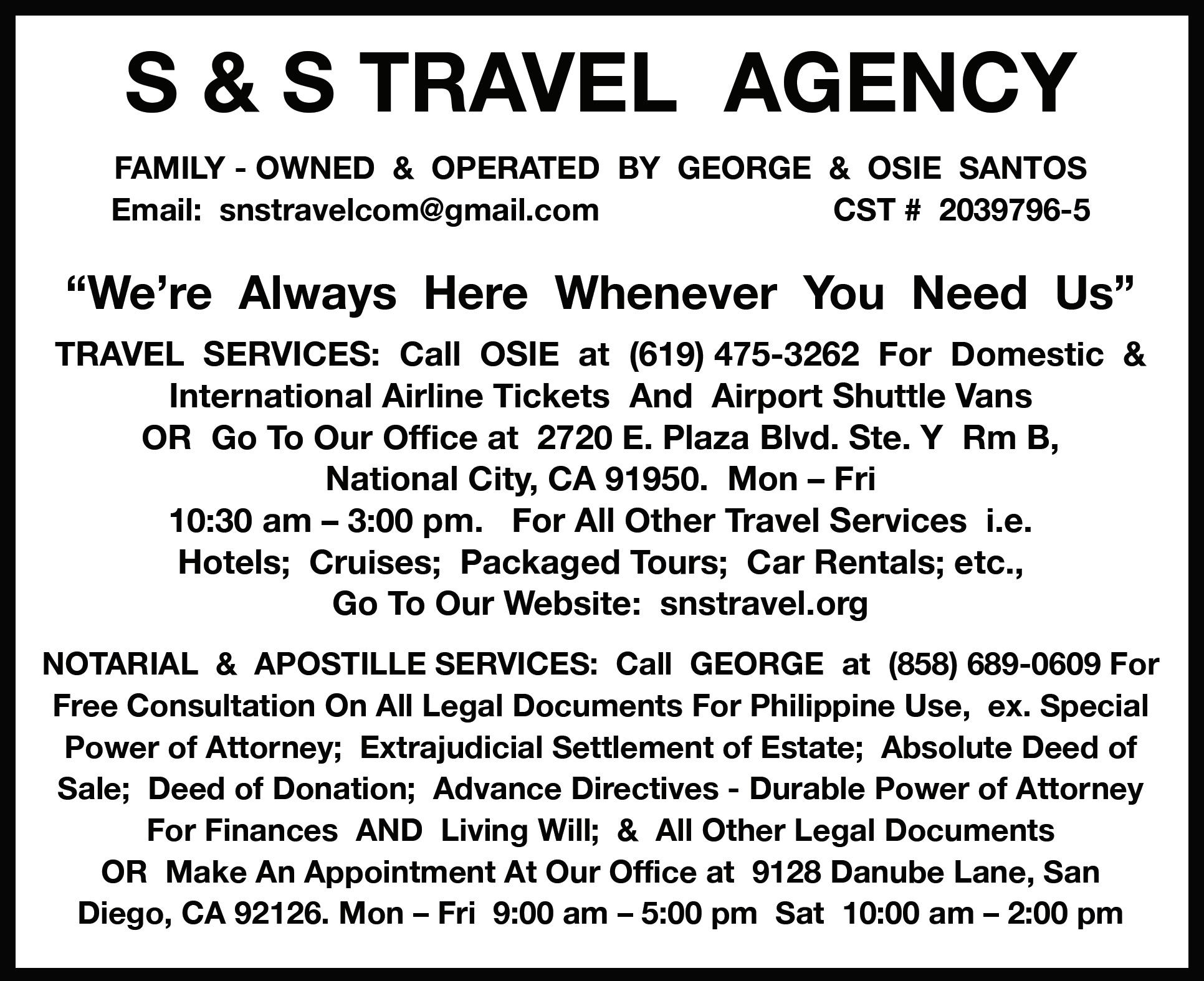 10 • March 22, 2024 - March 28, 2024 Filipino Press www.thefilipinopress.com Let us help you grow your business. PLACE YOUR AD with Filipino Press TODAY! E-MAIL: filpressads@aol.com ATTENTION BUSINESS OWNERS!!! Are you looking to sell your products or market your services to the Filipino Community? This space is reserved for you.. Call for special rate and learn about our effective marketing program Call /text: 619-755-0755 Prayer to Saint Expedite May the intercession of the glorious martyr , St Expedite, recommend us, O my God, to Thy goodness, in order that his protection may obtain for us what our own merits are powerless to do. Amen. We supplicate Thee, Lord , to inspire by Thy grace all our thoughts and actions, that thou being their principle, we may, by the intercession of St. Expedite, be conducted with courage, fidelity and promptitude, at the time proper and favorable, and come to a good and happy end, through our Lord, Jesus Christ Amen St Expedite, honored by the gratitude of those who have invoked thee at the last hour and for pressing cases, we pray thee to obtain from the all powerful goodness of God, by the intercession of Mary Immaculate, (today or such a day) the grace we solicit with all submission to the Divine Will Amen