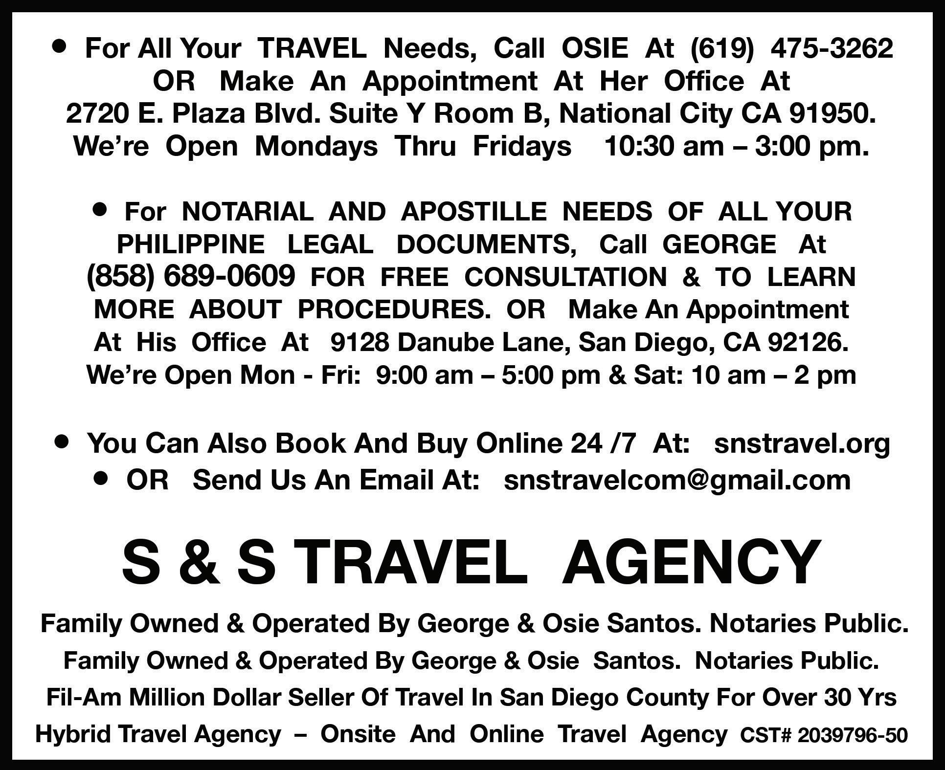 Want to sell your products? PLACE YOUR AD TODAY! E-MAIL: filpressads@aol.com CALL: 619.434.1720 • FAX: 619.399.5311