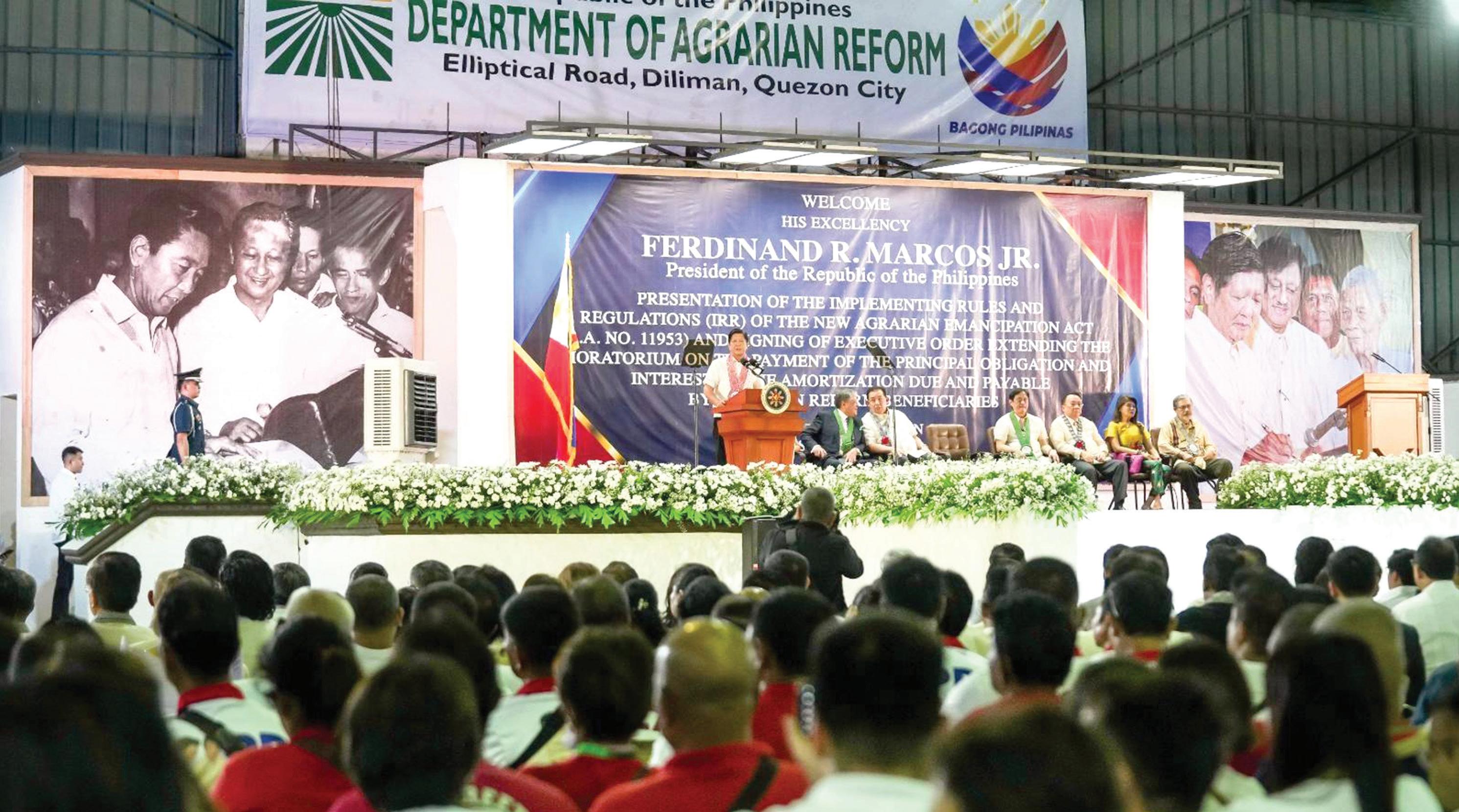 The agrarian reform department presented to President Marcos the IRR of the NAEA, or Republic Act No. 11953, after signing the twoyear extension of another executive order (EO) imposing a moratorium on amortization payments by farmer beneficiaries on agrarian debt.