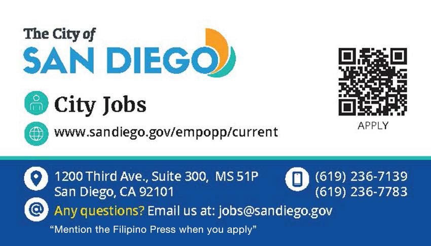 See PBBM on 7 Since 1986 September 15, 2023 - September 21, 2023 www.thefilipinopress.com • (619) 434-1720 San Diego’s No. 1 Source of News & Information for the Filipino Community • An Award-Winning Newspaper ENROLLING NOW FREE CLASSES ONLINE AND IN PERSON EDUCATION | P12 MASARAP NA MURA PA! chEck It Out FOOD | P2 PAMPERED PINAY: HEALTHY STEPS hELPFuL tIPS EMPOWERMENT | P2 See JUDGE ROHANEE on 10 JUDGE ROHANEE ZAPANTA (Ballotpedia) PBBM on completion of IRR of the New Agrarian Emancipation Act : ‘Best ever gift I received’