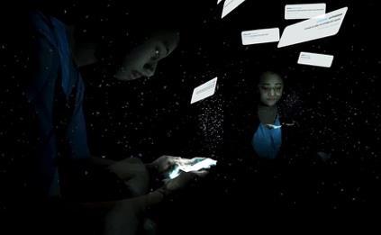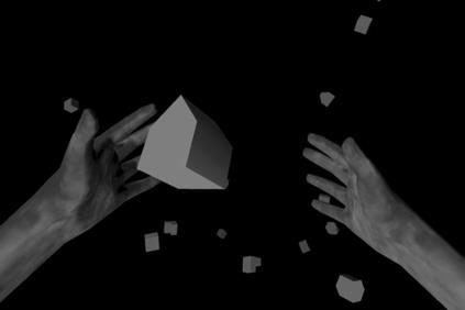 Getting a feel for the XR controls: a visitor of DOK Neuland exhibition “THX 4 Nothing”.