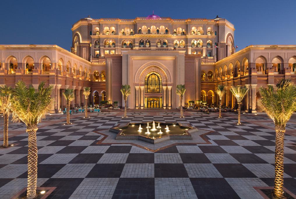 Das luxuriöse Emirates Palace Hotel ist eines der bekanntesten Wahrzeichen Abu Dhabis und garantiert einen unvergesslichen Fünf-SterneAufenthalt. Die faszinierende Architektur im Arabesken-Stil umfasst 114 Kuppeln und eine bemerkenswerte 72,6 Meter hohe große Kuppel, die mit einem glitzernden geometrischen Muster aus Gold, Perlmutt und Edelsteinen verziert ist.